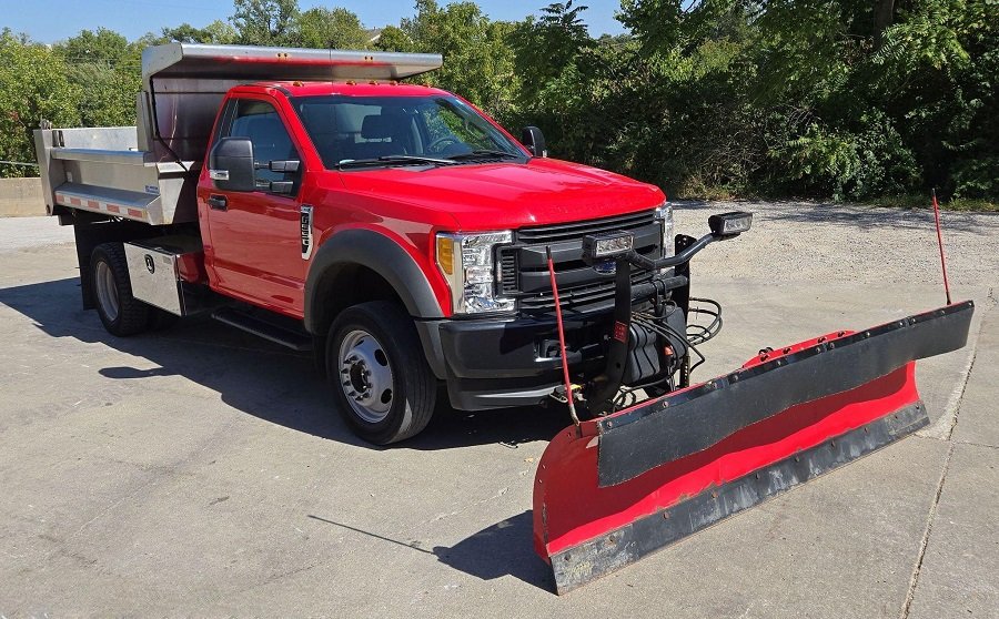 Work-ready 2017 Ford F-550 Super Duty XL Dump Truck powered by a 6.8L V10 gas engine and automatic four-wheel-drive transmission. Built for power and reliability, this truck includes a heavy-duty dump bed, spreader, and snow plow—ideal for year-round use in construction, landscaping, or municipal…